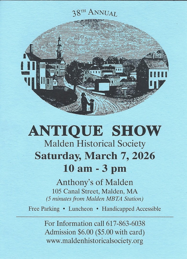 The Malden Historical Society is proud to present the 38th Annual Malden Antique Show, a beloved local tradition returning in 2026.