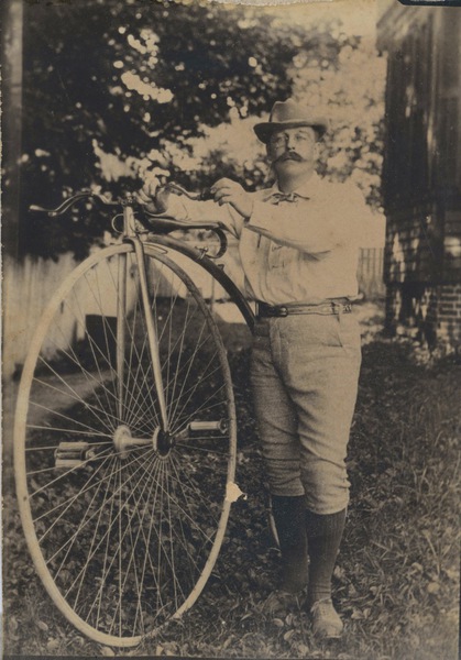 Among the most striking elements of the collection are the images documenting Baxter’s time abroad. Photographs from 1875 and 1877 correspond to his studies and journalistic work in Leipzig and Berlin—a formative period that helped shape his later achievements. Other notable images include an 1885 outdoor portrait of Baxter as a “wheelman,” posed beside his bicycle, symbolizing a moment when innovation and mobility were transforming everyday life.